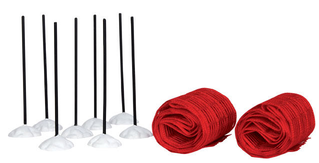Mit Hilfe dieser Skinetze und der Stangen können Sie die seitliche Abgrenzung Ihrer Skipiste gestalten.